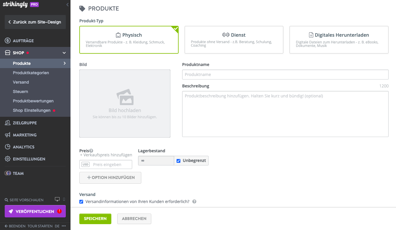 - Füge deiner Website einen Shop-Bereich hinzu.